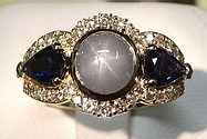 Blue Grey Star Sapphire & Dark Blue Sapphires